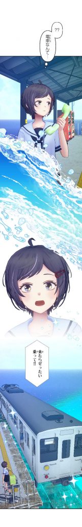 High school student Haruka falls unconscious on the train to her grandmother’s house.She wakes up to find herself at a deserted train station floating in the ocean.